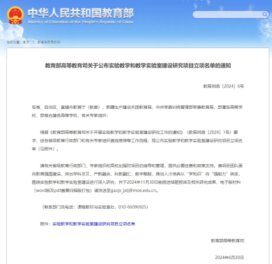 本次教育部高教司从包括清华大学、北京大学等在内的高校中共遴选立项实验教学和教学实验室建设研究项目234个,安徽省共8项,旨在充分发挥实验室提升学生科学精神、实践能力和创新意识的重要阵地作用,深入开展高校实验教学和教学实验室建设研究,发挥数字赋能作用,推动实验教学改革,为建设适应新时代人才培养需求的新型实验教学体系提供有力支撑。