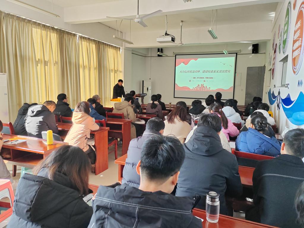 12月2日上午,力物学院邀请人文学院副院长代大为在明道楼A318为学院师生作“大力弘扬宪法精神,建设社会主义法治文化”为主题的专题讲座。讲座中代大为提到要坚持宪法自信,我国宪法是历史经验的总结、现实成果的确认、未来发展的指引,是中华民族站起来、富起来、强起来的根本法的确认和保障,是我们国家和人民经受住各种困难和风险考验、始终沿着中国特色社会主义道路前进的根本法制保证。他号召广大师生在工作、学习和生活中严格依法规范自己的行为,做学法、知法、懂法、守法的新时代法治模范。