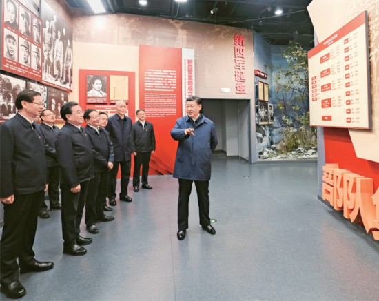 2023年12月3日,中共中央总书记、国家主席、中央军委主席习近平在上海考察结束返京途中,来到江苏省盐城市参观新四军纪念馆。 新华社记者 王晔/摄